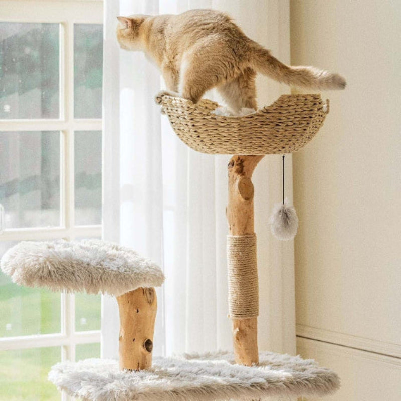 Cloud Series Cat Tree With Natural Branch Scratching Tree & Cat Condo