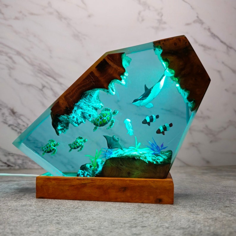 Custom Orca Shark and Turtle Resin Night Lights, Manta Ray and Jellyfish Resin Lamp, Epoxy Resin Lamp, The Turtle Hospital