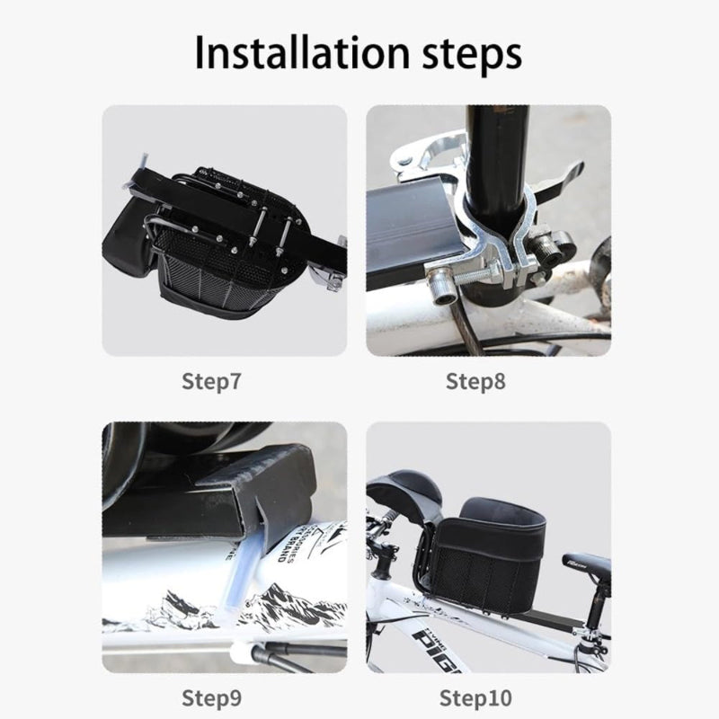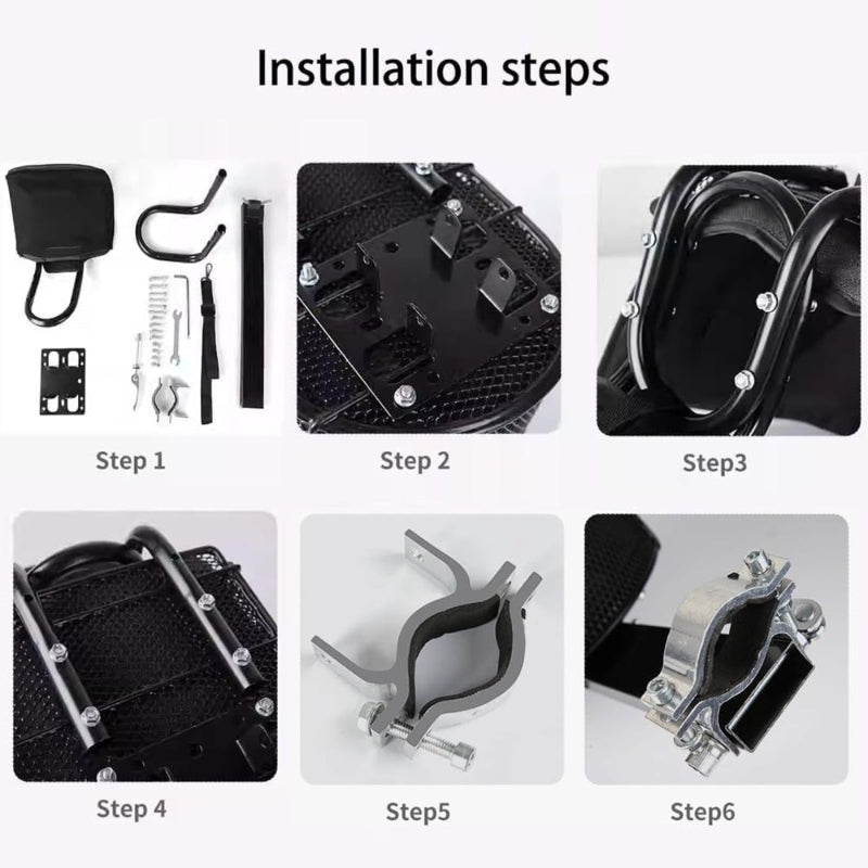 - Reinforced & Stable: Steel frame with dual-point reinforcement under the seat tube and top tube; anti-slip clamp plus quick-release lever for fast on/off front bike dog seat mounting