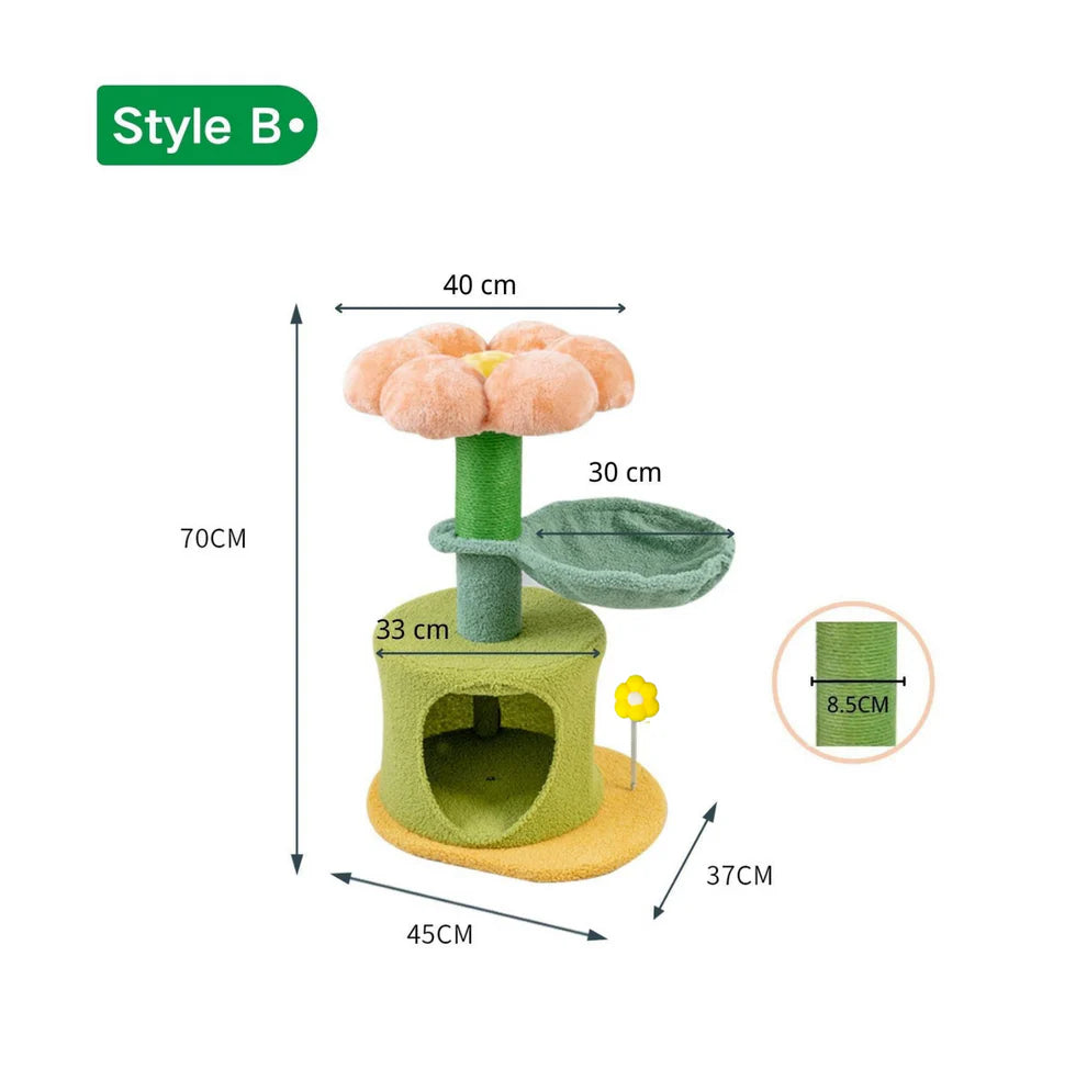 Flower-Styled Cat Tree with Soft Nest & Scratching Posts