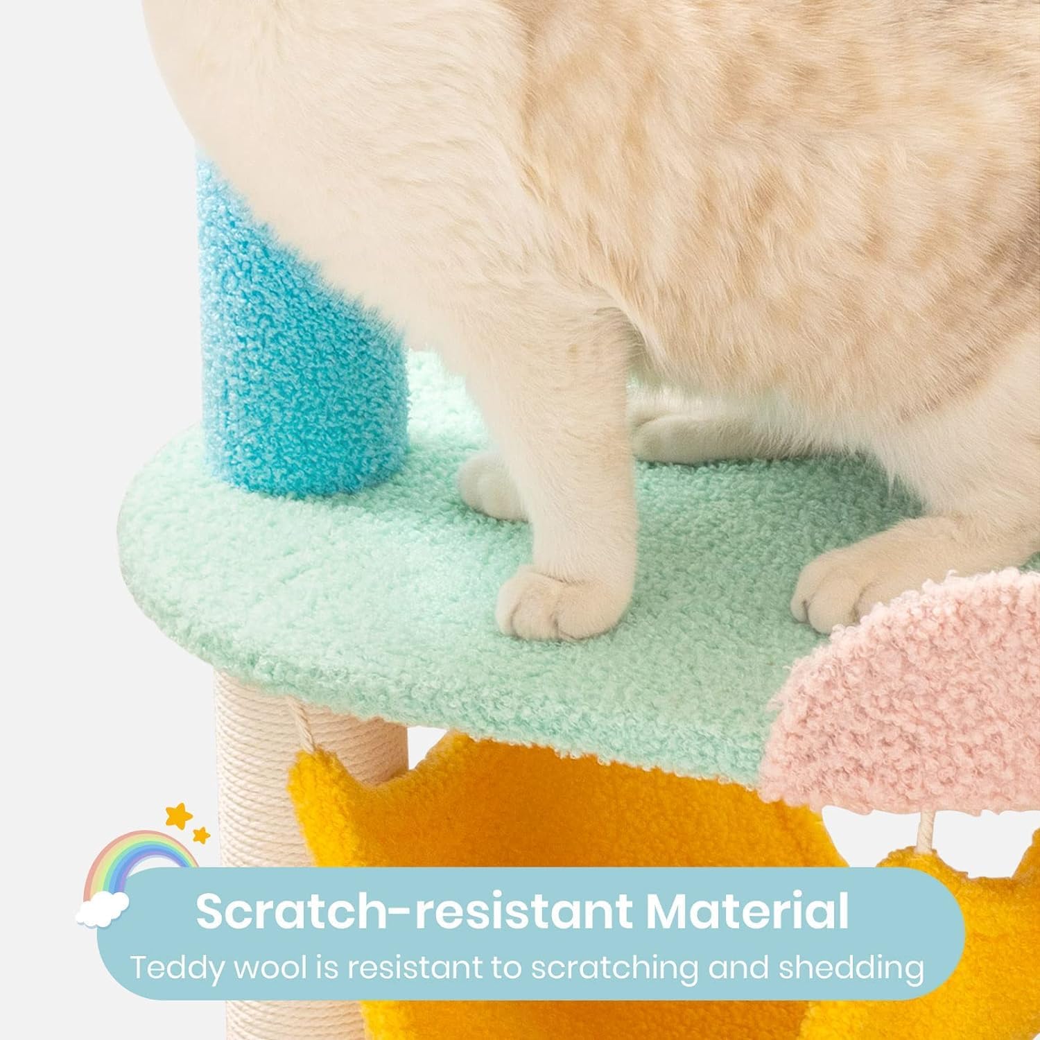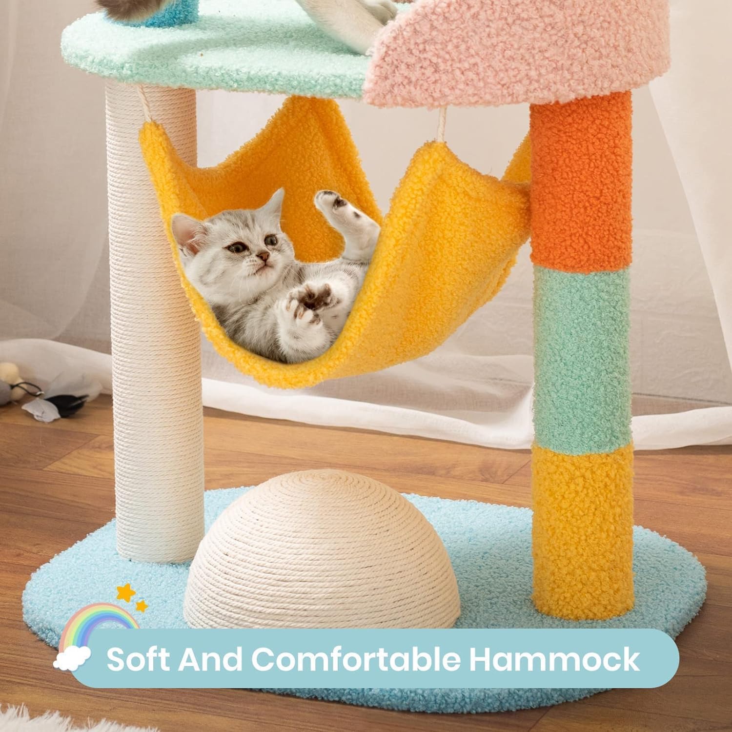 - [ATTRACTIVE APPEARANCE]: 5-month product support, please contact us if you have any confusion about the cat trees.The unique design of the cat tree for kittens is inspired by the rainbow. The diversity is attractive to cats, and the cat tower for small cats is also suitable for elegant home-style furniture.