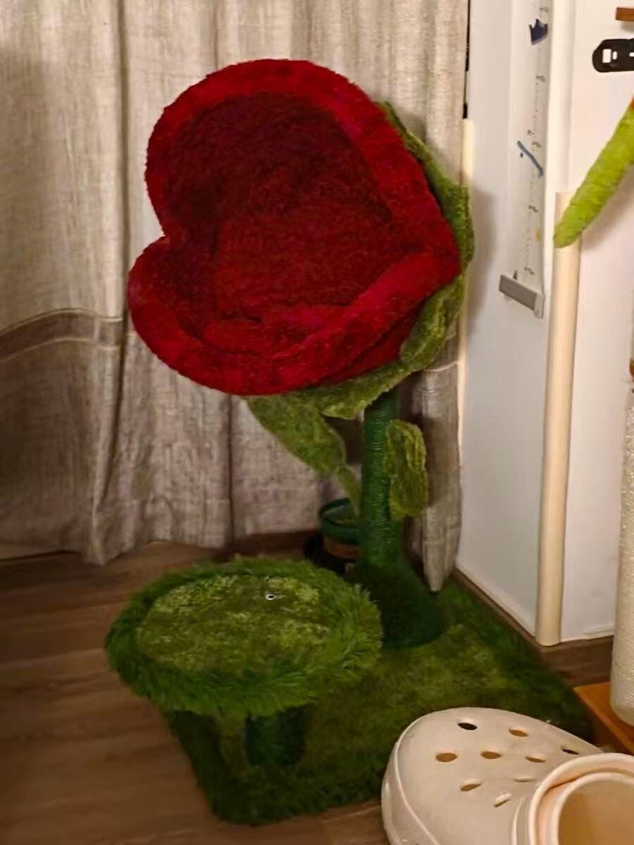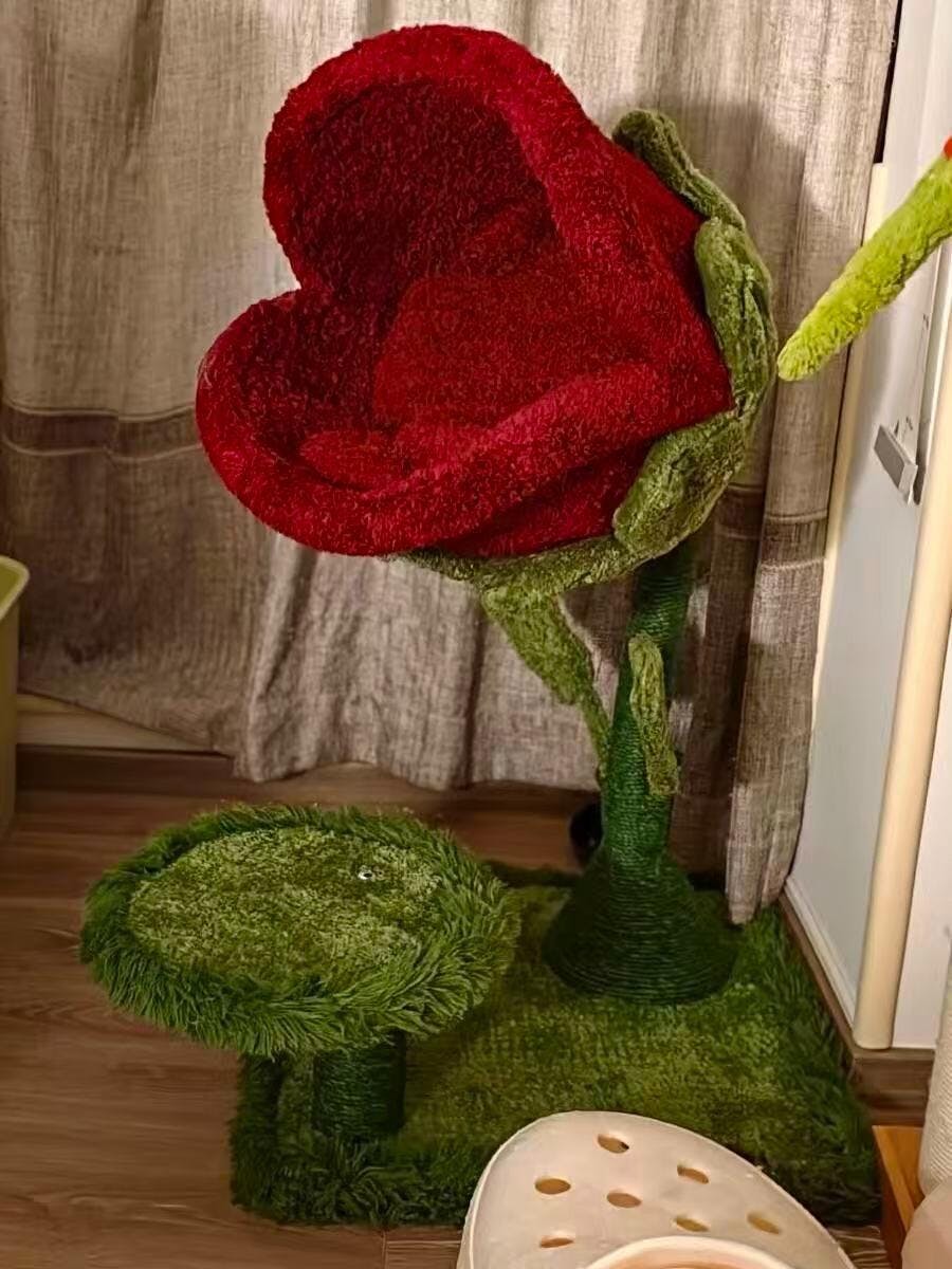 Give your cat the comfort they deserve with this beautifully designed flower-shaped cat tree, blending modern décor with feline luxury. Crafted to resemble a blooming rose, it features a soft, plush red petal bed supported by a sturdy green stem base, offering both stability and style.